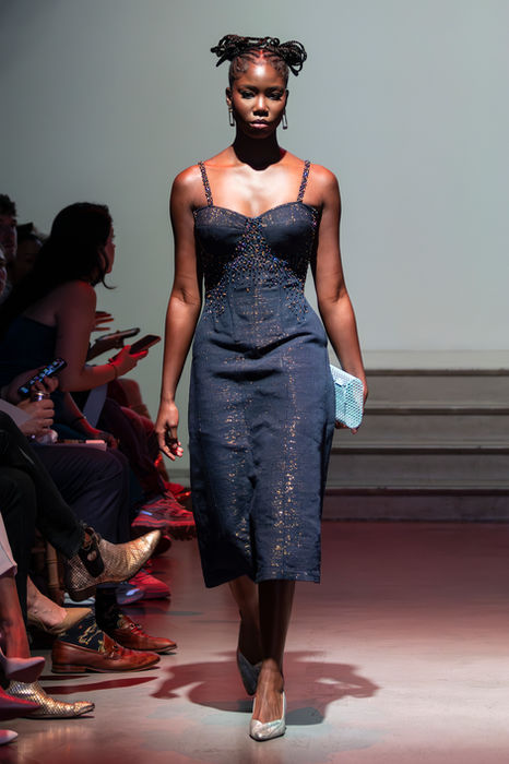 Shaped by a childhood immersed in craftsmanship through his seamstress mother, Asiedu’s creative language is informed by rhythm, fabric, and narrative. Drawing from Ghanaian heritage and reinterpreting tradition through a modern, global lens, JERMAINE BLEU creates silhouettes that are both timeless and forward-looking.